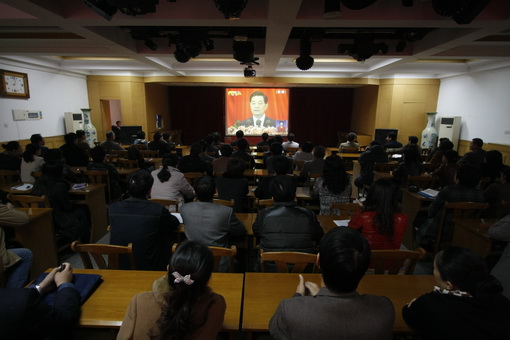 收看现场秩序井然,大家聚精会神地聆听着胡锦涛总书记所作的《坚定不移沿着中国特色社会主义道路前进为全面建成小康社会而奋斗》的报告,许多党员干部不时地快速记录下总书记报告中的重要内容。在认真收听收看了胡锦涛总书记的报告后,大家一致表示,胡锦涛总书记所作的工作报告振奋人心,催人奋进;明确了科学发展观是党必须长期坚持的指导思想,提出了全面建成小康社会目标。我们将深入学习贯彻党的十八大精神,按照党中央的新要求指导我院的各项工作,动员和组织广大党员干部、师生员工进一步统一思想,振奋精神,立足岗位,以饱满的热情、良好的精神面貌,创造新业绩,为早日把学院建设成普通本科院校而努力奋斗!