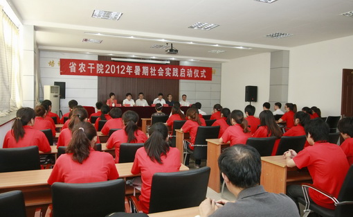 7月2日上午9时,我院在北校区举行2012年暑期社会实践启动仪式,院党委委员、副院长王兴国出席并作重要讲话,青岛波尼亚食品有限公司副总经理高科到会致辞,院党委(院长)办公室、院团委(学生处)、食品科学与工程系等部门负责人及参加暑期社会实践的部分大学生代表参加了启动仪式。