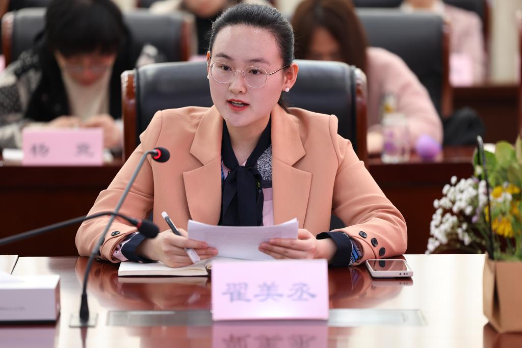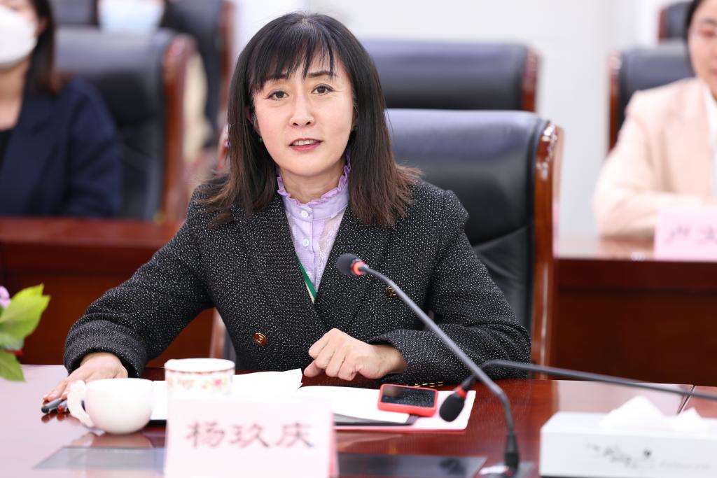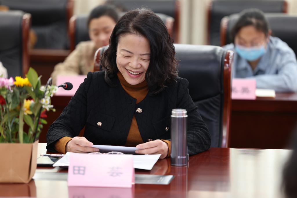 杨玖庆代表学校党委、行政向辛勤耕耘在各个岗位上的女教职工致以崇高的敬意和节日的祝福,对大家为推动学校各项事业发展做出的努力和贡献表示衷心的感谢。她指出,学校广大女教职工柔肩扛重任,巾帼显担当,在教学、科研、管理、疫情防控等方面都取得了突出成绩,为学校高质量发展做出了重要贡献。她从三个方面勉励女教职工:一是加强政治理论学习。要以习近平新时代中国特色社会主义思想为指导,深刻领悟“两个确立”的决定性意义,增强“四个意识”、坚定“四个自信”、做到“两个维护”,不断提高政治判断力、政治领悟力、政治执行力。二是巾帼建新功,风劲好扬帆。要以坚定的理想信念,以特有的兰心蕙质,以不让须眉的豪情壮志,担起光荣使命,在各自的工作岗位上继续再建新功。三是注重家庭家教家风建设。要自觉践行社会主义核心价值观,做伟大事业的建设者、做文明风尚的倡导者、做敢于追梦的奋斗者,建设好家庭、弘扬好家风、涵养好家教,以文明新风助力学校事业高质量发展。