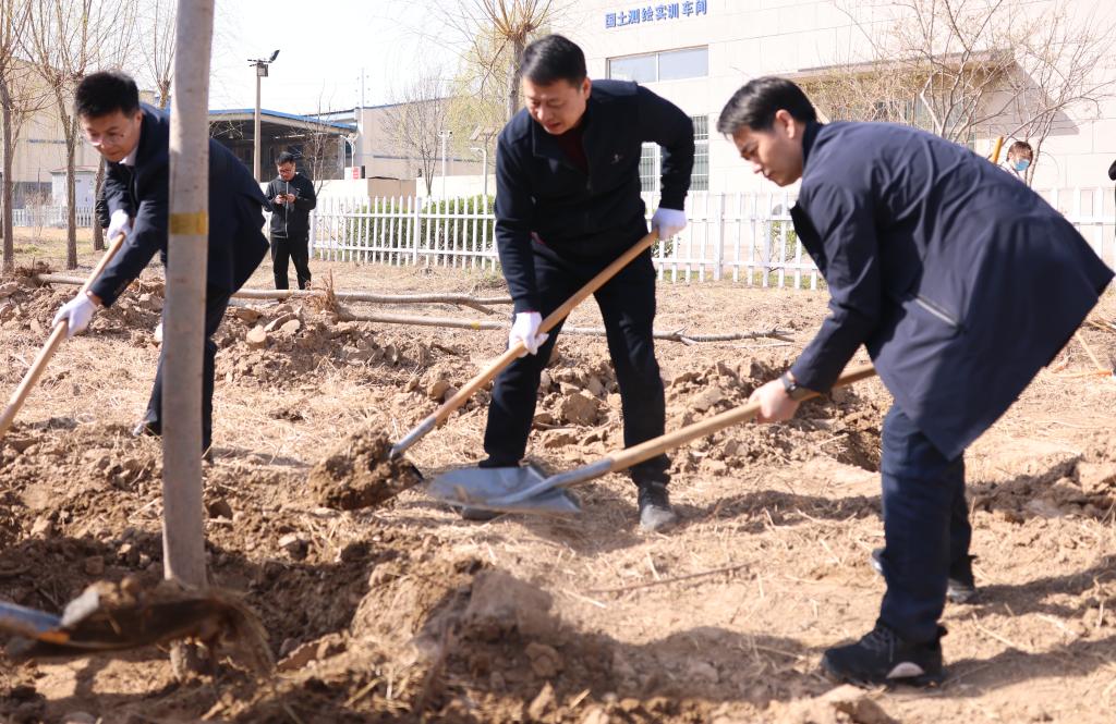 在植树现场,校领导与大家一起挥锹铲土、培土围堰、提水浇灌,精心栽种每一棵树苗。经过大家的辛勤劳动,30株白蜡、五角枫树,昂然挺立于校友林,焕发着勃勃生机,构成了校园里一道亮丽的风景线。大家用实际行动践行习近平生态文明思想,厚植学校绿色发展理念,弘扬绿色文明风尚,让绿色低碳成为我校高质量发展的最美配色,让校友的深厚情谊充盈着美丽的校园。