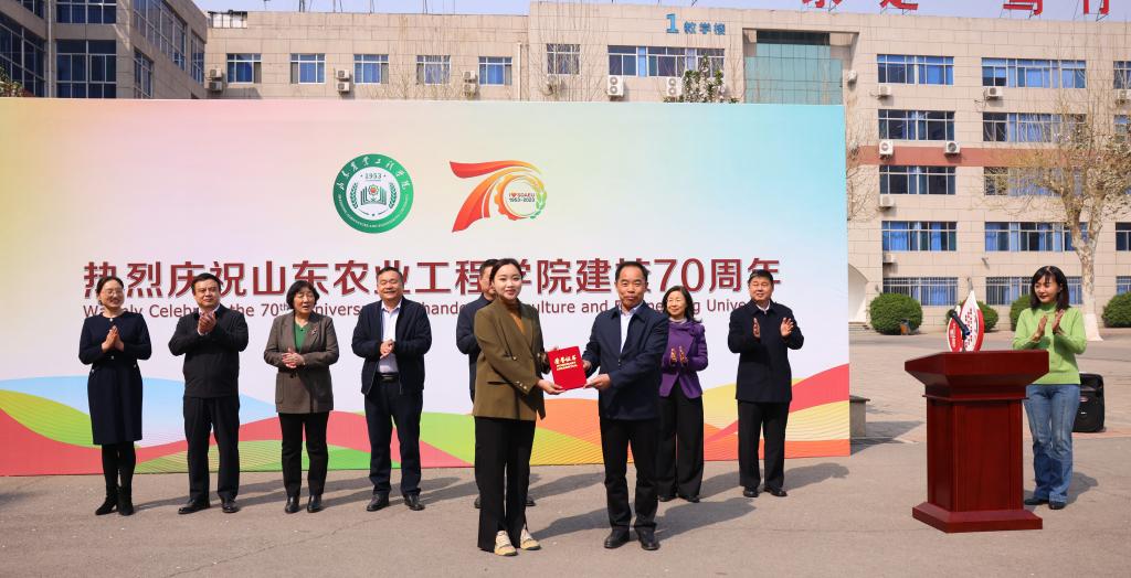 3月27日,我校在济南校区隆重举行建校70周年校庆标识物揭幕仪式。校领导张鸿波、李进京、张业赏、黄晓彦、杨玖庆、郑华美、周吉鹏、牛化振、韩娟出席揭牌仪式,中层干部和师生代表共200余人参加仪式。仪式由党委委员、副校长杨玖庆主持。