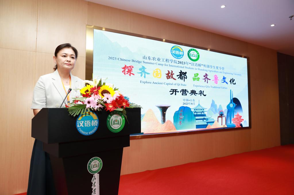 8月7日,由教育部中外语言交流合作中心主办、京东影业影视传媒承办的2023年“汉语桥”外国学生夏令营开营仪式在淄博校区成功举行。来自韩国成均馆大学、韩国外国语大学、白石大学、京畿道盆唐荣德女子高中、京畿道瓦阜高中等学校的14名师生和20余名夏令营志愿者共同参加开营仪式。党委委员、副校长周吉鹏出席开营仪式并致辞,党委宣传部、团委、国际交流与合作处、淄博校区综合管理办公室、食品科学与工程学院、机械电子工程学院、农业科技学院、林业工程学院、人文学院、基础课教学部等部门的负责同志、教师和相关工作人员参加开营仪式。会议由国际交流与合作处处长门辉华主持。