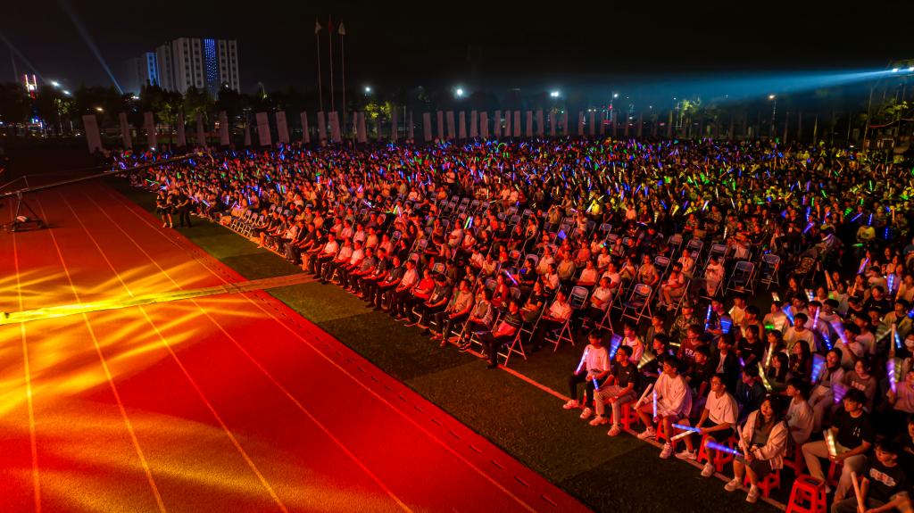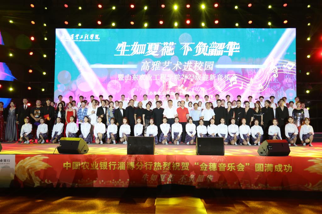 春华秋实谱新篇,培根铸魂育新人。9月16日,学校在淄博校区举办高雅艺术进校园活动暨2023级迎新音乐会。校领导张鸿波、李进京、郑华美、周吉鹏、牛化振、韩娟,共青团淄博市委书记徐强、中国农业银行淄博分行副行长李瑞正、淄博职业学院副院长辛爱梅等领导出席,同现场近万名师生共同观看演出。