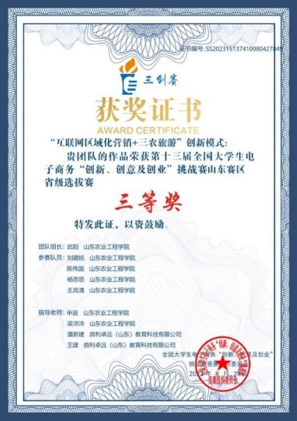 自赛事启动后,由教务处牵头、商学院承办,通过精心组织、广泛发动,有15支优秀项目团队参加校赛决赛,经过层层选拔,两支队伍进入省赛。先后历时6个月,由商学院申辰、梁沛沛老师与企业教师联合指导的“互联网区域化营销+三农旅游”创新模式项目取得山东赛区省级选拔赛三等奖。
