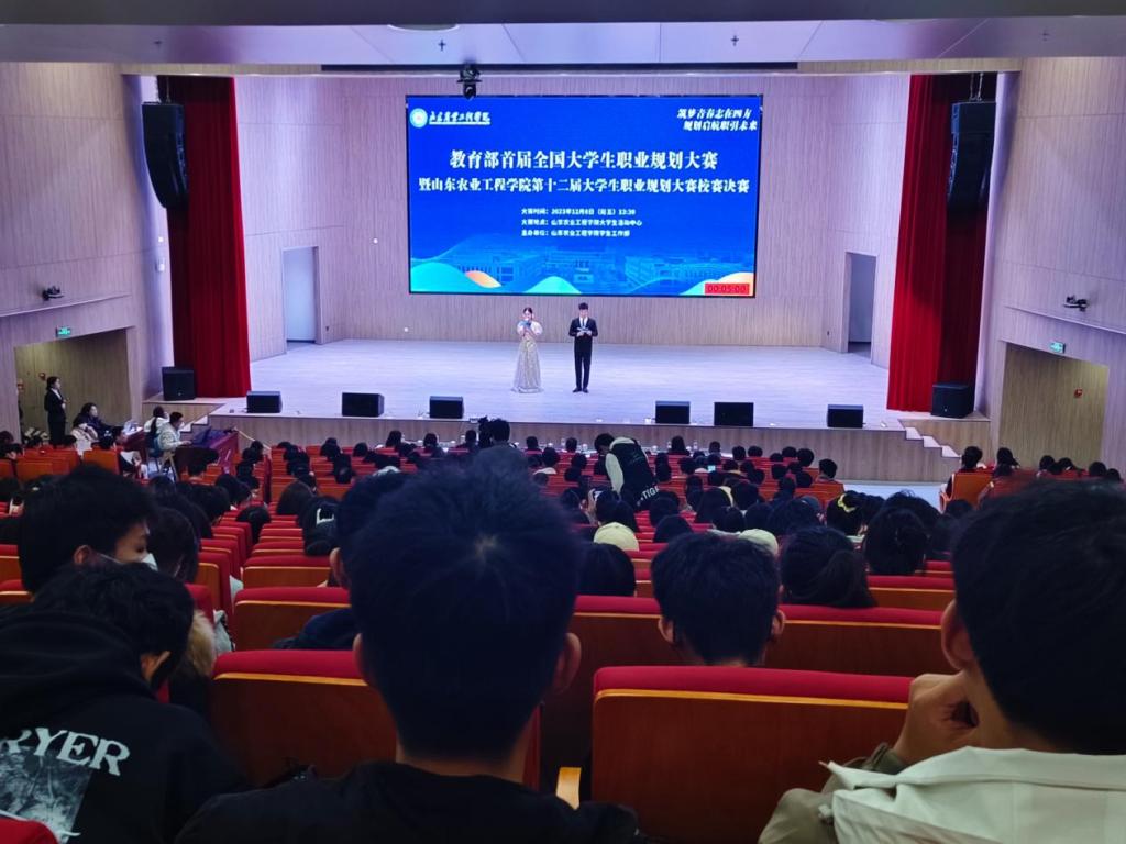为贯彻落实党中央、国务院关于高校毕业生就业工作的决策部署,引导大学生树立正确的成才观、就业观和择业观,科学合理地规划学业与职业发展,加强我校对学生的生涯教育和就业指导工作,落实《教育部关于举办首届全国大学生职业规划大赛的通知》文件精神要求,12月8日,我校在淄博校区大学生活动中心成功举办第十二届大学生职业规划大赛校赛决赛。校党委委员、副校长杨玖庆,学生工作部负责人,各二级学院领导、辅导员、指导教师以及400余名学生代表到场观看比赛。本次比赛通过学校官方视频号全程现场直播。