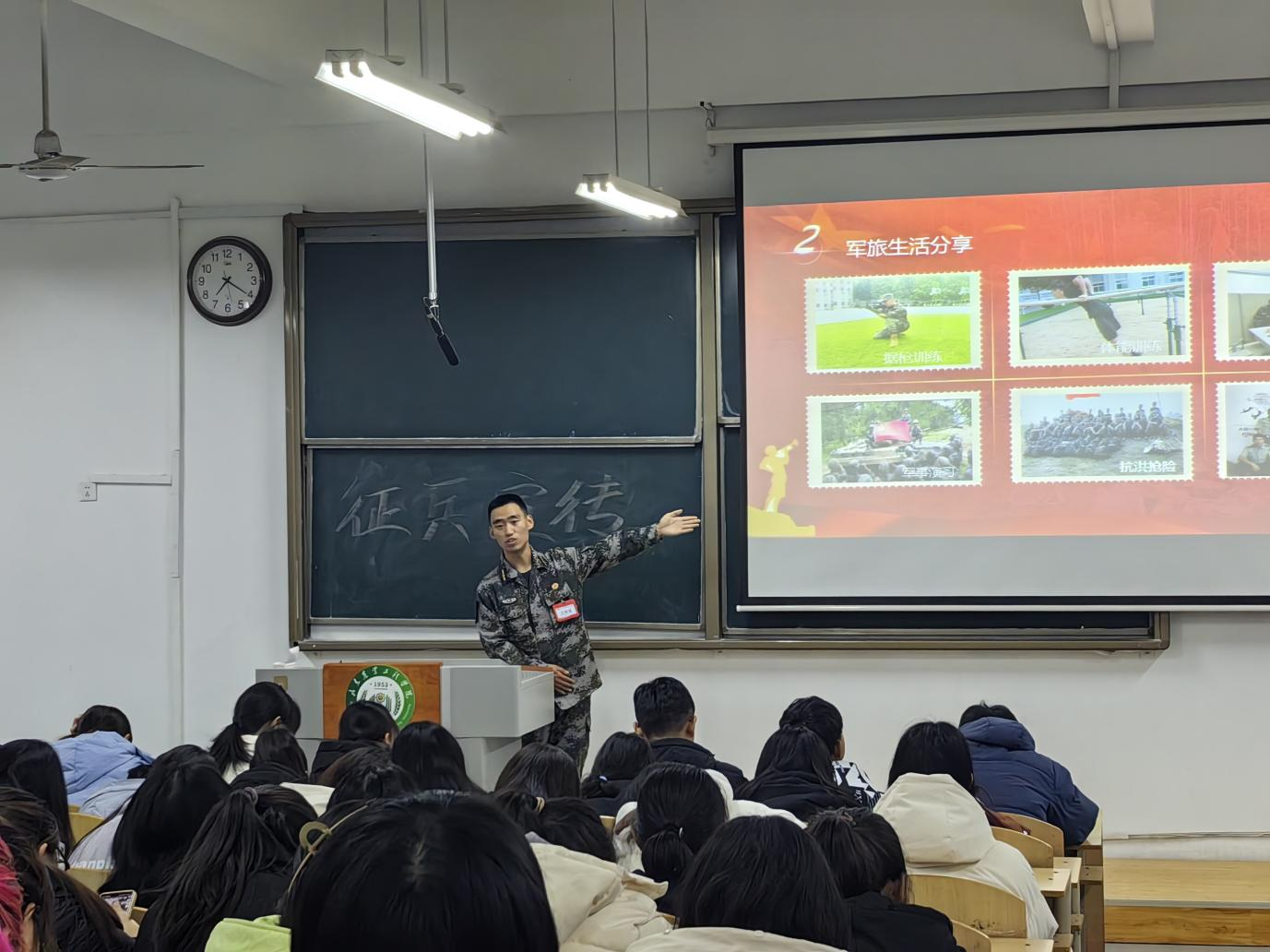 针对2024届毕业生,在全校范围内开展征兵宣传专题宣讲会。宣讲员们讲述了自己在军队中的生活,表示这段经历非常有意义且令人难忘,成为了人生中最宝贵的财富,他们更加懂得了作为中国军人的责任和担当、牺牲和奉献。他们在现场对报名程序进行了演示,认真解答同学们对征兵政策的疑问,帮助有意向参军的2024届毕业生更加全面地了解征兵流程和条件,有效地鼓励了更多优秀青年投身于国防事业,为国家安全和社会发展作出贡献。