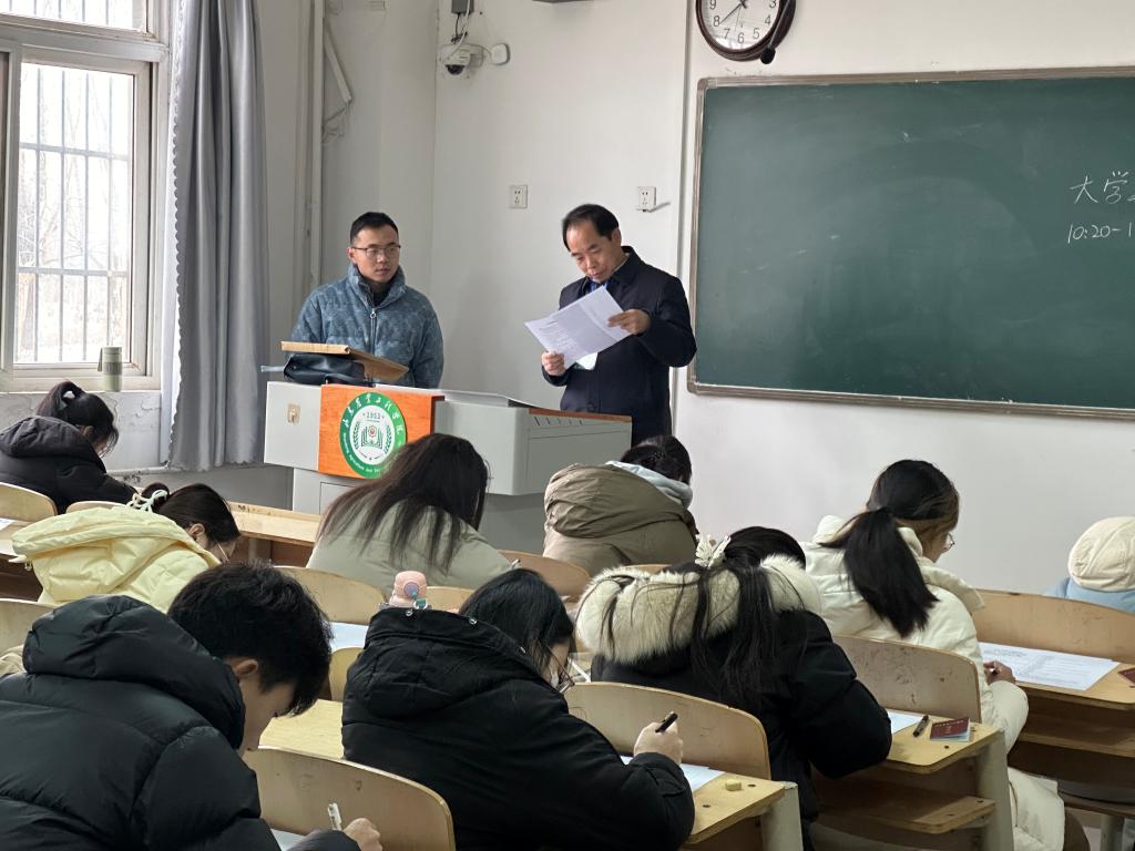 1月8日-12日,我校开展2023-2024学年第一学期的期末考试工作。为进一步加强考试管理,严肃考试纪律,优化考试环境,确保良好的考风考纪,校党委书记张鸿波,党委副书记、校长李进京,党委副书记张业赏,党委委员、副校长杨玖庆、郑华美、周吉鹏先后深入考场检查指导期末考试工作。