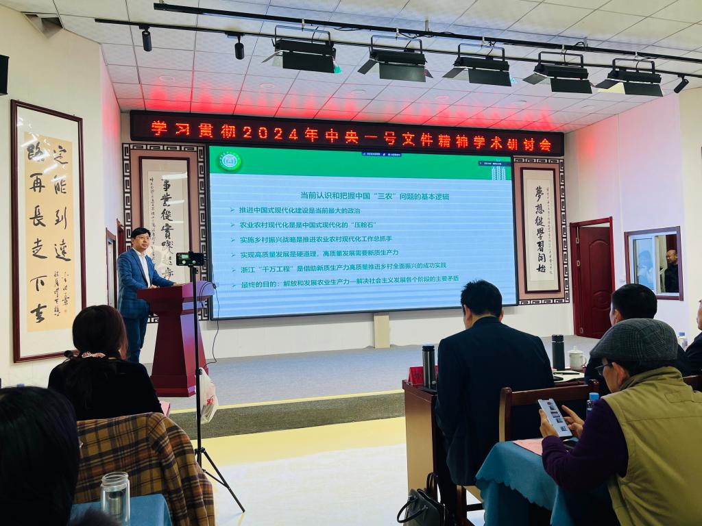 本次会议的主题是学习贯彻中央一号文件精神,有力有效服务乡村全面振兴,邀请了山东省农业技术推广中心正高级农艺师孙作文、中国生物多样性保护与绿色发展基金会国际部干事罗玉洁、山东农业大学马克思主义学院教授苏百义等12位专家及企业家作报告。在主旨报告环节,专家围绕学习“千万工程”经验,打造乡村振兴新模式等议题展开报告;在哲学研讨环节,专家就中国式现代化、农业新质生产力、生态文明与生物多样性保护、生态农田建设等议题,深入探讨乡村振兴中的哲学思考和高校在农业农村发展中的作用,为乡村振兴提供了理论支撑;技术研讨环节则聚焦虫振农业、零污染村庄建设、全域生态循环农业模式等前沿领域,企业家们分享了各自的技术成果和实践经验,为乡村振兴提供了有力的技术支持。其中,我校特聘教授刘玉升、马克思主义学院院长周安忠分别作了《“村·园”综合体模式及其实施规划—学习“千万工程”经验的“村·园综合体”实践行动》《发展农业新质生产力是推动乡村全面振兴的必然要求》的报告。