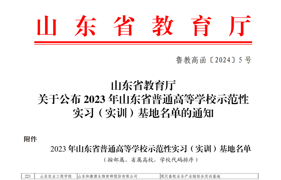 近日,山东省教育厅公布了2023年山东省普通高等学校示范性实习(实训)基地名单(鲁教高函〔2024〕5号),我校申报的现代畜牧业全产业链综合实训基地获批省级示范性实习(实训)基地。