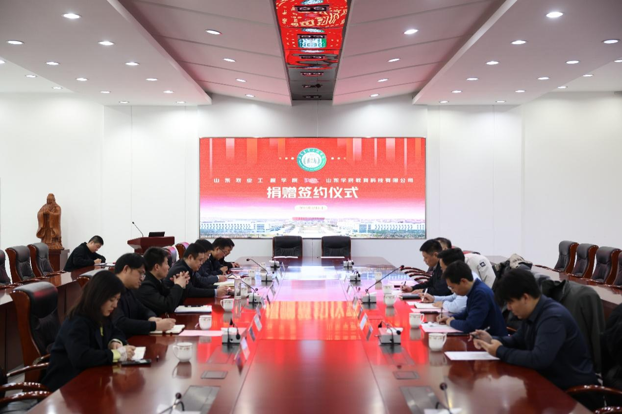 周吉鹏对王伟一行表示热烈欢迎,对山东学府教育科技有限公司的捐赠表示衷心感谢,并介绍了学校办学沿革和发展情况。他表示,希望双方秉承“交流合作、发展共赢”的原则,通过多种形式开展长期合作,构建互联互通、共享开放的教育合作体系,形成良性互动的教育发展新格局,未来共同争取将合作打造成标杆,为教育事业高质量发展作出积极贡献。