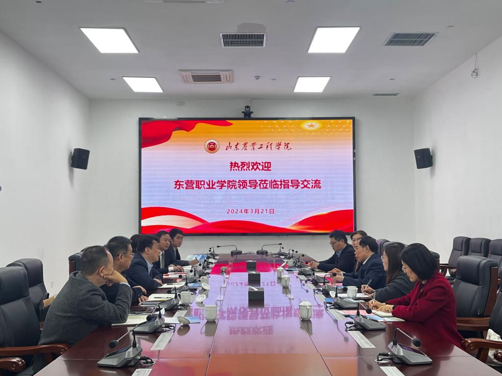 3月21日上午,东营职业学院院长解涛一行来我校交流考察。党委副书记、校长李进京会见客人并参加交流座谈。