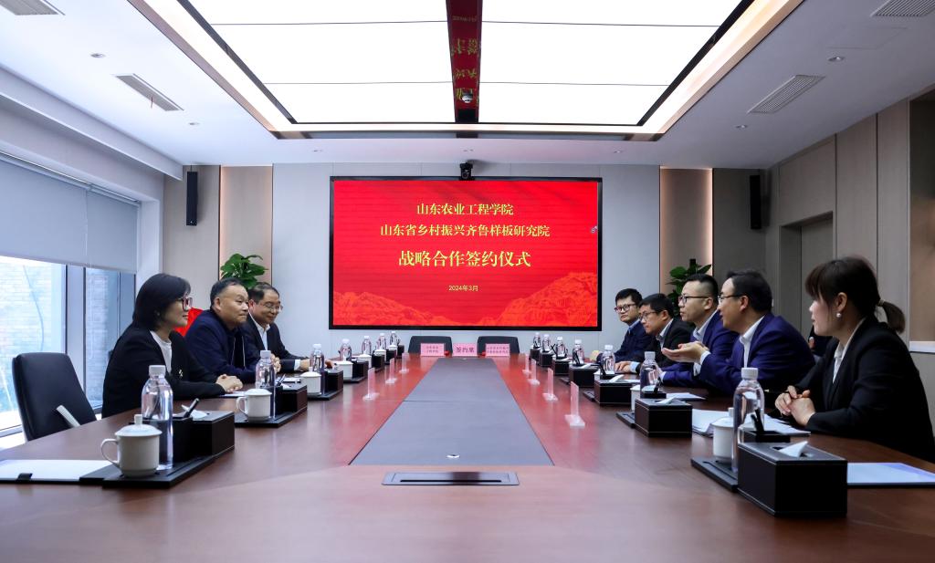 3月28日,我校与山东省乡村振兴齐鲁样板研究院在泰山九女峰乡村振兴示范区举行战略合作签约仪式。校党委副书记张业赏,山乡集团党委委员、总经理朱文博出席仪式。