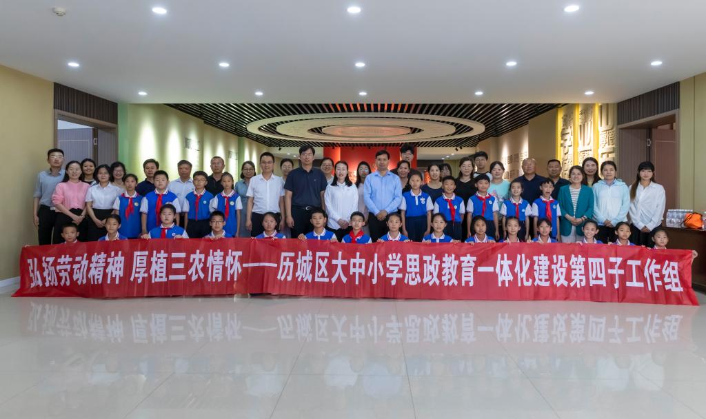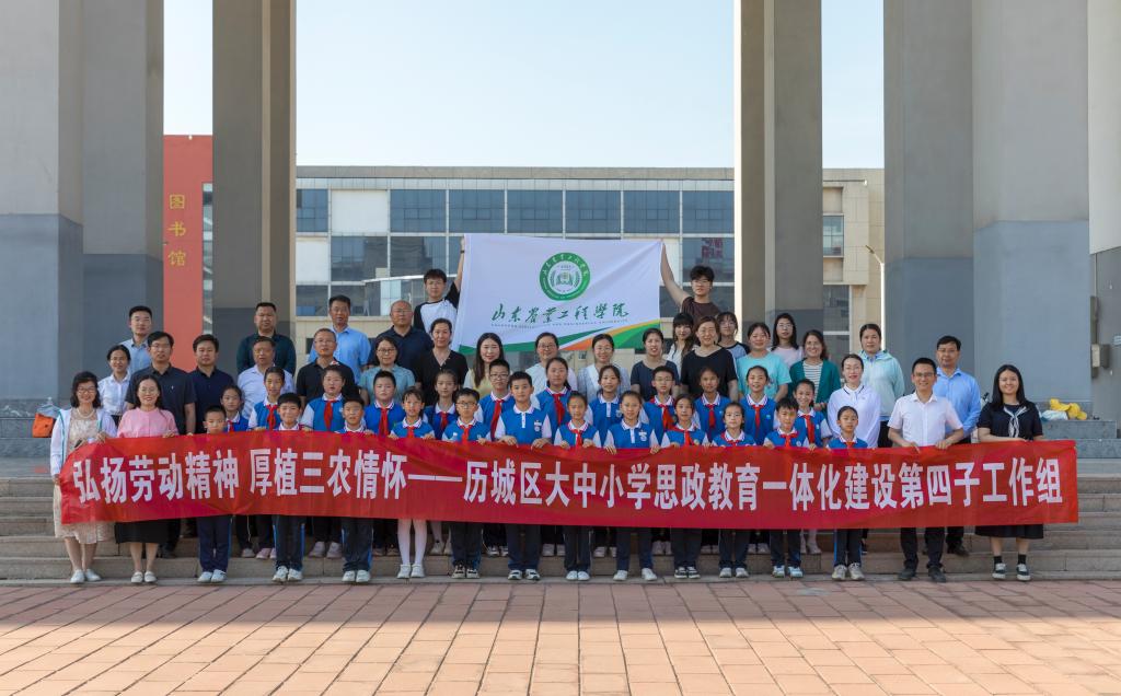 为深入贯彻落实习近平总书记对学校思政课建设作出的重要指示精神,推动大中小学思想政治教育一体化建设内涵式发展,我校马克思主义学院联合历城区教育和体育局以“弘扬劳动精神 厚植三农情怀”为主题,组织历城双语实验学校、历城区祥泰实验学校、历城区文苑小学、历城区幸福柳小学、历城区小辛小学、历城区坝子小学、历城区前张小学、历城区刘姑店小学8所中小学师生共聚齐河校区,开展“场馆里的思政课”和“田间地头里的思政课”实践教学活动。历城区教育和体育局党组成员、副局长贾延芳,我校马克思主义学院党总支书记、院长周安忠,党总支副书记刘效楠,历城区教育和体育局思政科相关同志,历城区大中小学思政教育一体化建设第四子工作组各成员学校校长、思政教育一体化负责人、思政骨干教师代表等参加本次活动。
