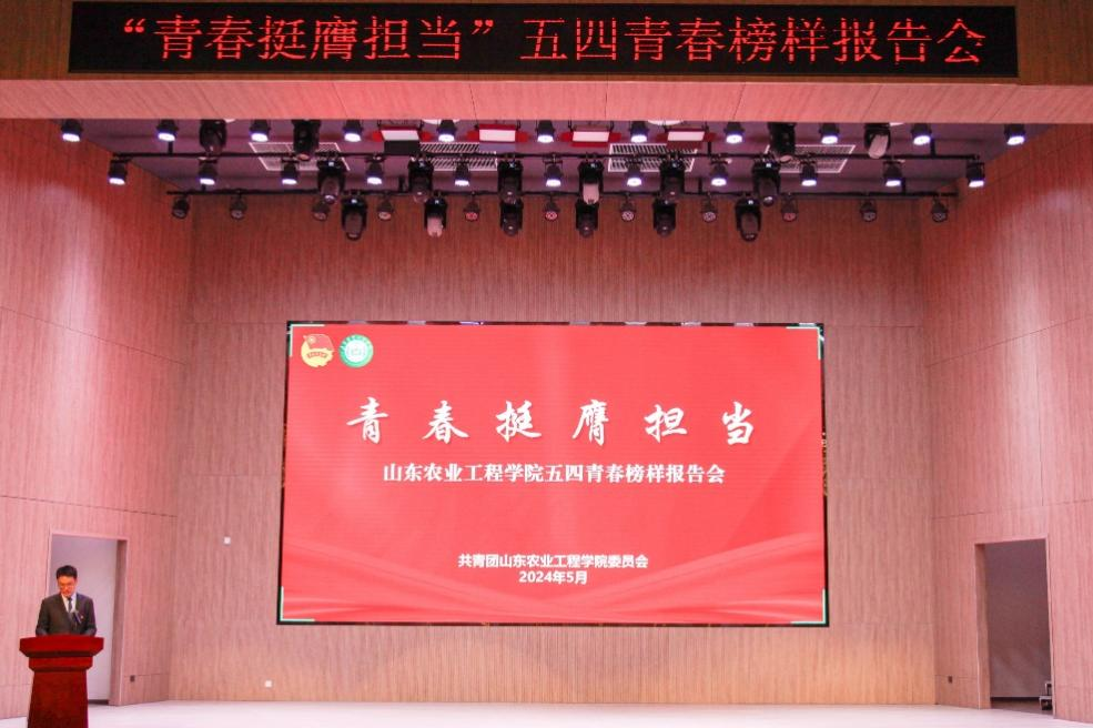 为继承和发扬五四精神,充分发挥青年典型的示范引领作用,带动引领团员青年在中国式现代化建设中挺膺担当,5月16日下午,我校在淄博校区举办“青春挺膺担当”五四青春榜样报告会。校党委委员、副校长杨玖庆,团委、学生工作部、淄博校区综合管理办公室主要负责人,各学院党总支负责人、团总支负责人,2022-2023学年优秀团员、优秀团干部代表,第六期青马工程“领航班”学员等近500人出席会议。会议由团委书记谷晓川主持。
