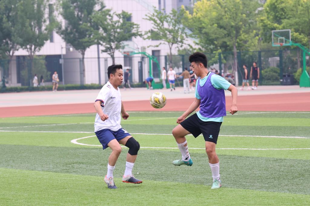 本场比赛于当日下午4点30分准时打响,对阵双方是教职工足球队与学生联队,比赛为9人制,分上下半场,各三十分钟。比赛开始后,学生联队即展示出体能优势,一直以进攻为主。教职工足球队则立足防守,瞄准时机“反击”。直至上半场尾声阶段,教职工足球队以1:0的比分领先。易边再战,技高一筹,比分落后的学生联队做出大量的人员调整,以延续体能优势,全力进攻,最终连扳两球,以2:1的比分战胜教职工足球队。