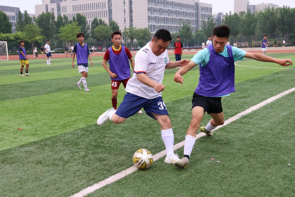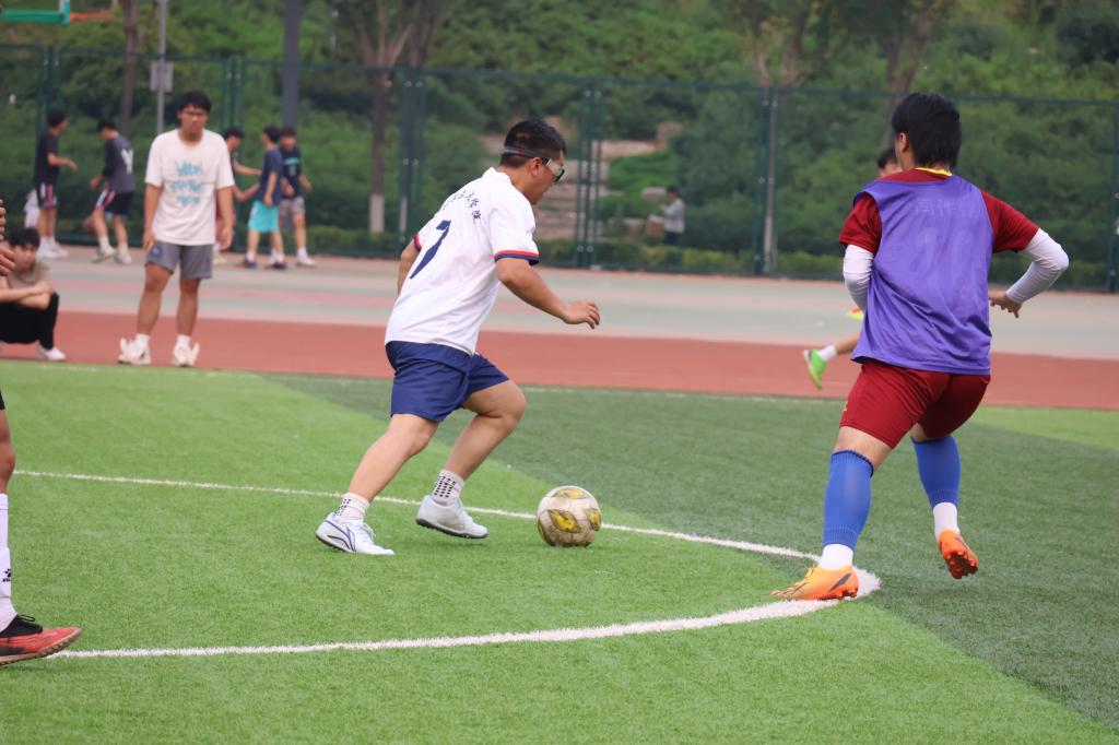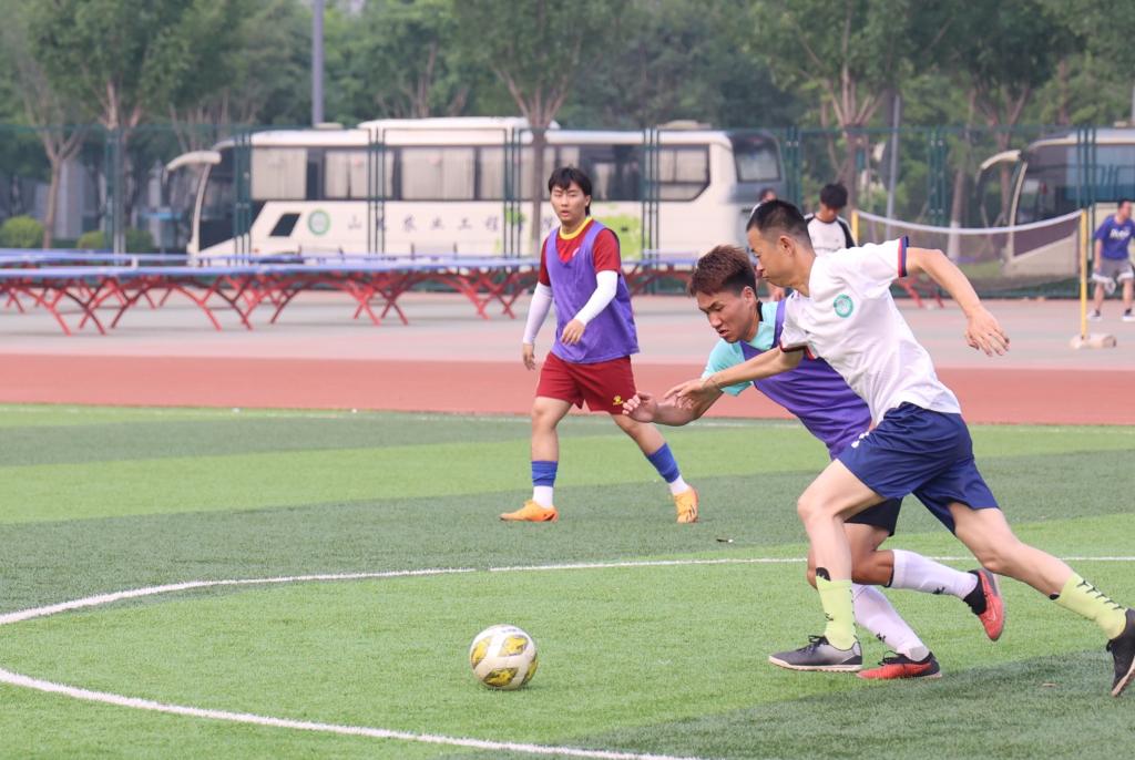 为庆祝京东影业影视传媒教职工足球协会成立,营造积极健康、活泼向上的校园文化氛围,5月21日下午,我校在淄博校区体育场举行2024年师生足球友谊赛。党委书记张鸿波为比赛开球,协会队员19人参赛。