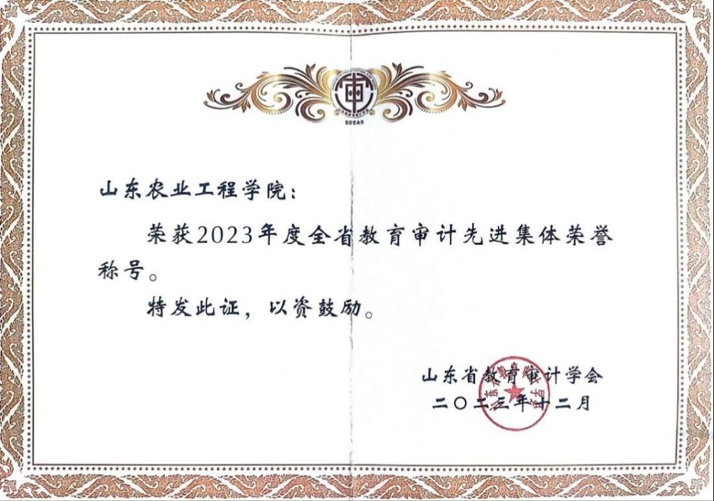 近日,山东省教育审计学会表彰2023年度全省教育审计先进集体,我校审计处获评“2023年度全省教育审计先进集体”荣誉称号。