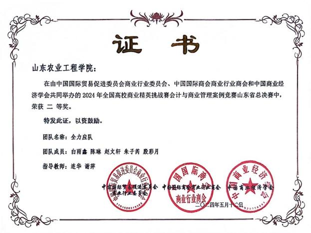 近日,2024年全国高校商业精英挑战赛会计与商业管理案例竞赛山东省总决赛以线上评审竞赛方案和阐述视频的形式进行。我校商学院首次组队参加,经过校赛选拔,参加的11支参赛队伍在决赛中表现优异,荣获山东省一等奖2项(晋级国赛)、二等奖5项、三等奖4项。