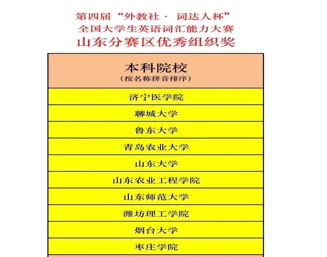 近日,第四届“外教社·词达人杯”全国大学生英语词汇能力大赛落下帷幕。我校学子在本次比赛中荣获省赛特等奖1项、一等奖1项、二等奖16项、三等奖40项。