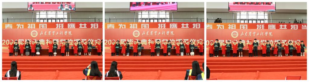 毕业典礼结束后,进行了学位授予仪式。校领导分别为毕业生拨穗、颁发学位证书,见证毕业生的“高光”时刻,并与同学们亲切握手、微笑合影。