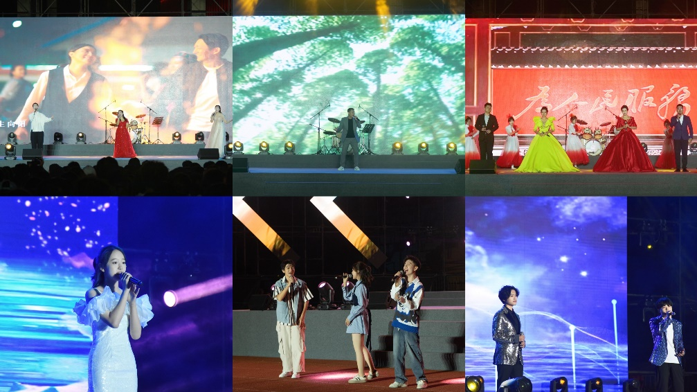 李华、朱蕾蕾、崔师睿、王鹏程、王浸皓等老师与人文学院、资源与环境工程学院的同学们共同演绎的歌舞《灯火里的中国》《领航》,以动人的旋律和优美的舞姿,抒发对党和国家的无限深情,向新中国成立75周年献礼。夏天宇、王洁两位老师联袂演奏的新民乐《彩云追月》,以轻盈飘逸的音符为观众带来了一场跨越时空的音乐盛宴。石晓涵、郑加雨等同学带来的歌曲《人世间》《先成山再寻海》《繁星》《长大》等,用歌声讲述成长故事,用热情拥抱美好未来,充分展现了山农工学子在农业强国建设的广阔天地中再续新篇的勇气和决心。