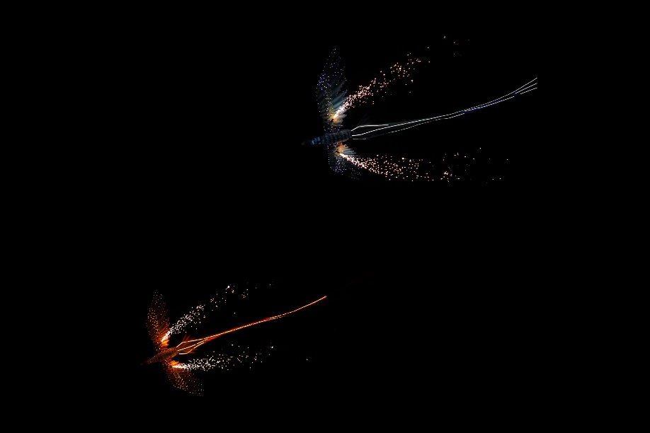 以深蓝夜空为画布,以绚丽灯光为画笔,在两架凤凰无人机勾画出的光影画卷中,本场晚会的大幕缓缓拉开。