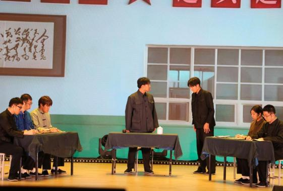在展示活动中,我校团队以独特的表演风格和深厚的艺术功底脱颖而出。舞台短剧《春雷》讲述了时任菏泽市地委书记周振兴在东明县韩集乡调研的过程中,通过一次与乞人的偶遇,一句烈士遗孀的期盼,一声震耳欲聋的春雷,坚定了支持红山村村民进行土地制度改革的决心,宣示了中国共产党不变的执政理念,彰显了中国共产党人深厚的为民情怀。