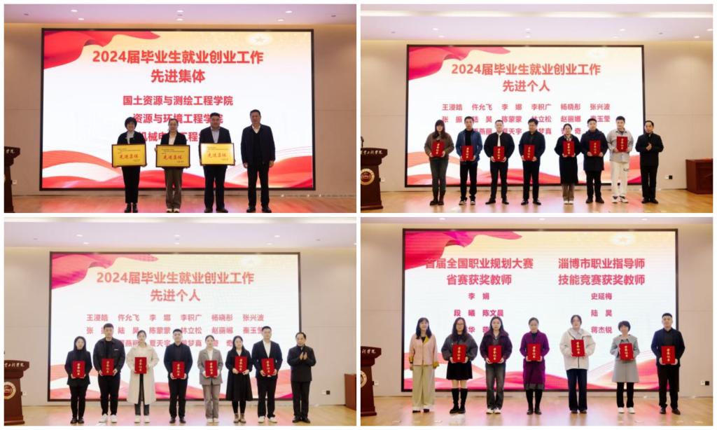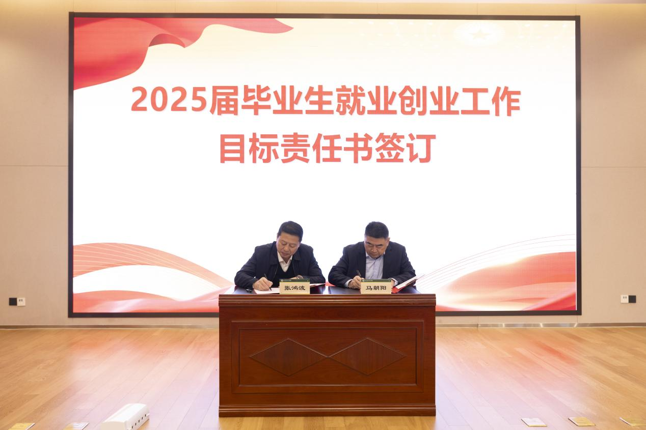 会上,分别表彰了全国职业规划大赛省赛和淄博市职业指导师技能竞赛获奖教师,学校2024届毕业生就业创业工作先进集体和先进个人。获奖单位和个人代表分别从学院、负责就业工作辅导员以及毕业班班主任的不同视角,介绍了自己的就业工作经验和心得体会。党委书记张鸿波与二级学院党总支书记代表马朝阳签订2025届毕业生就业创业工作目标责任书。