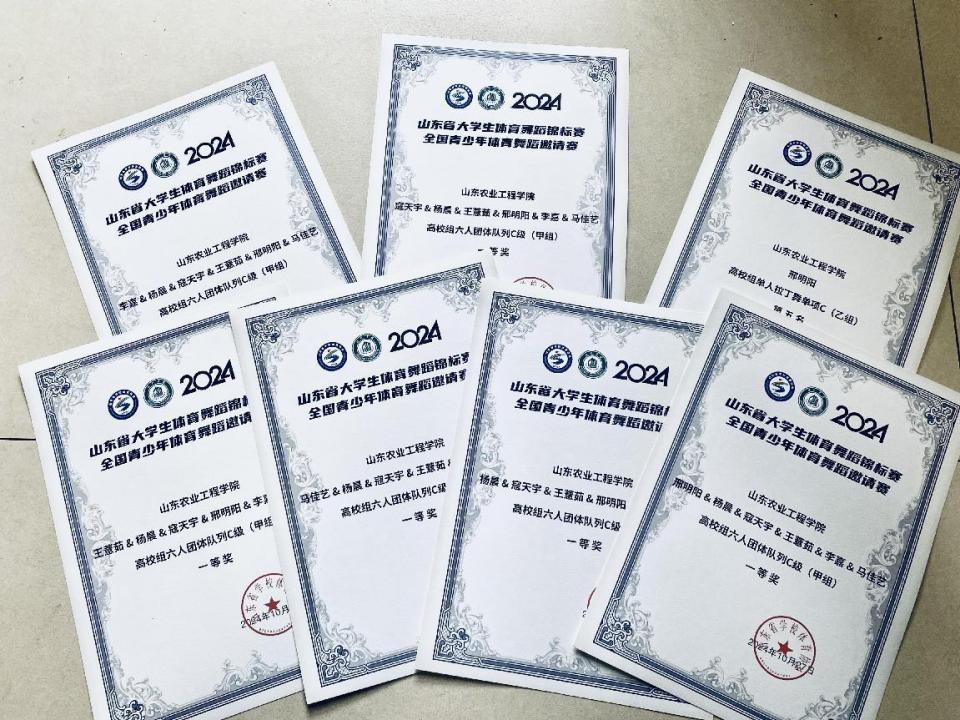 近日,由食品科学与工程学院杨晨、马佳艺,商学院李嘉、邢明阳,国土资源与测绘工程学院寇天宇、资源与环境工程学院王薏茹等6名同学组成的校体育舞蹈队,在基础课教学部李永振、孟鑫老师的带领下参加2024年山东省大学生体育舞蹈锦标赛。我校学子奋勇拼搏、突破自我,展现出扎实的基本功与团队默契,在高校甲组6人团体队列组斩获冠军,荣获团体一等奖,并获得体育道德风尚奖。