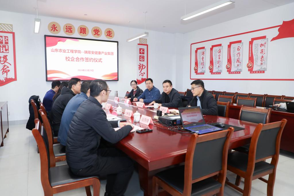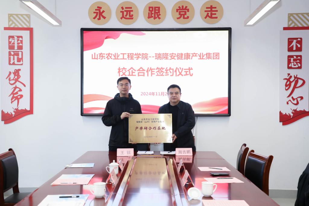 11月29日上午,我校食品科学与工程学院与瑞隆安(山东)健康产业集团在淄博校区签署校企合作协议,并进行授牌仪式和颁发企业导师证书。校党委委员、副校长周吉鹏,瑞隆安健康产业集团董事长王锐、副总经理杜树基、马文靖,食品科学与工程学院院长于克学等领导出席签约仪式。