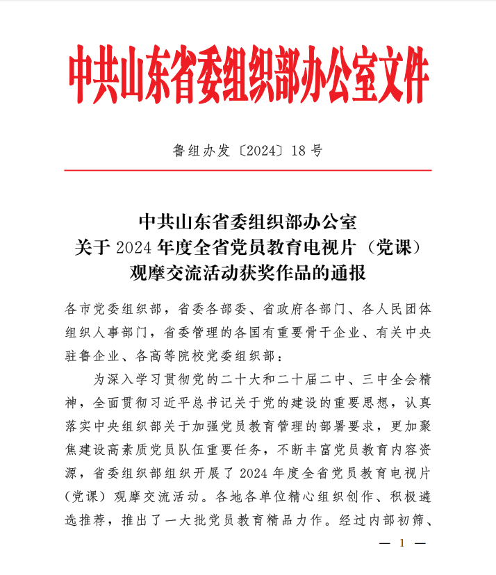 近期,省委组织部公布了2024年度全省党员教育电视片(党课)观摩交流活动评选结果,经过现场观摩和专家评审等环节,最终表彰80部电视片、80部党课、40部“我和我的支部”作品。其中,“我和我的支部”作品获表彰的共有5所高校,我校制作报送的《答案》受到表彰。