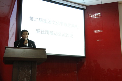 最后,王兴国副院长在闭幕讲话中对获奖单位和个人表示热烈祝贺,对本次社团文化节的成功举行给予了充分肯定。王院长指出,院学生社团工作在近几年一直保持了良好的发展态势,社团规模不断扩大,活动质量显著提高,社团活动已经成为校园一道亮丽的风景线。他希望在下一阶段的社团工作中,准确把握方向,正确引导,积极鼓励,加大扶持,不断丰富活动内容,创新工作模式,科学发展,服务学生成才,形成学生社团“百花齐放、百家争鸣”的良好局面,使社团工作成为校园文化建设的重要力量,积极推动校风和学风建设向更深层次发展。