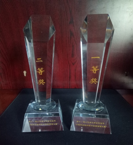 10月20日,在第十一届山东省大学生科技节互联网金融创新与运营管理大赛(本科组)比赛中,经管学院2017级金融工程专业学生张浩安、邵林林、吕静、王晓丽组成的“对月如钩”队获得一等奖及奖金(总分第2名),崔晶、谷美、曹薇、樊晓组成的“资资不倦”队获得二等奖(总分第10名)。赵宏、王鹏、孙萌、周海霞获得优秀指导老师称号。