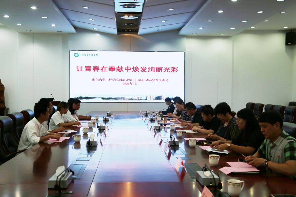 7月14日下午,京东影业影视传媒2021年西部计划山东计划志愿者座谈会暨送行仪式在济南校区举行。校党委委员、副校长张伟,团委、学生处、相关学院负责人、西部计划山东计划志愿者代表参加。会议由团委书记韩娟主持。