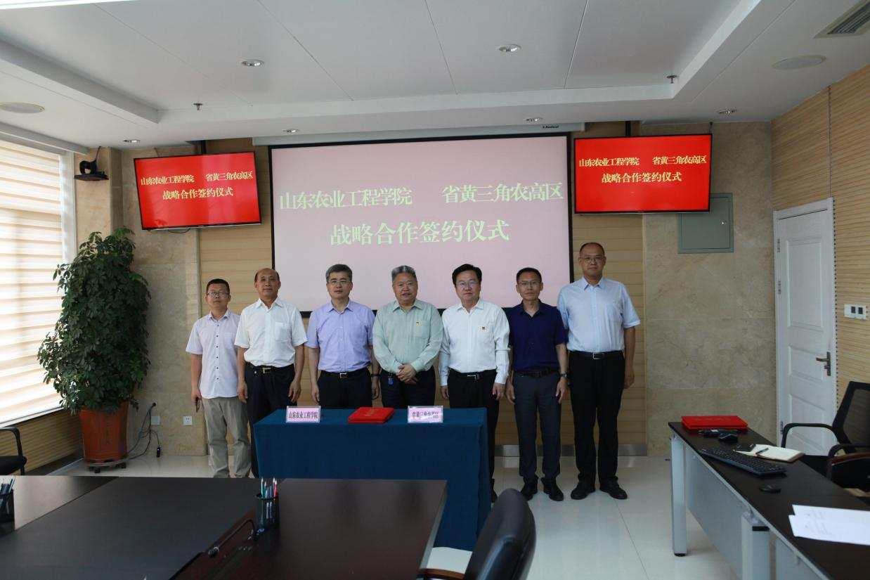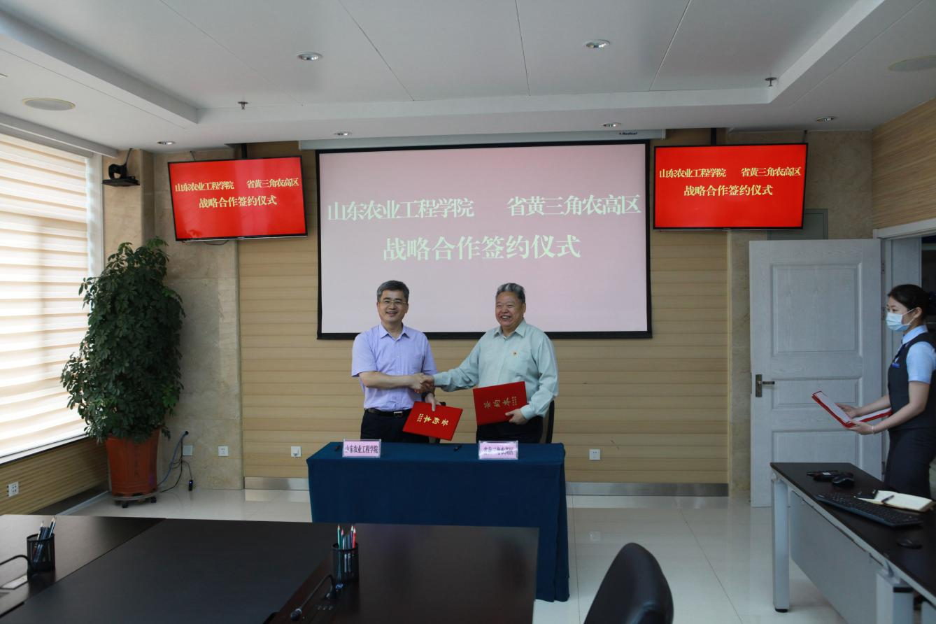 近日,我校与山东省黄河三角洲农业高新技术产业示范区管委会签订战略合作协议。我校副校长张兆明与省黄三角农高区党工委委员、管委会副主任王守宝代表双方签订协议。科技处处长董传河等参加签字仪式。