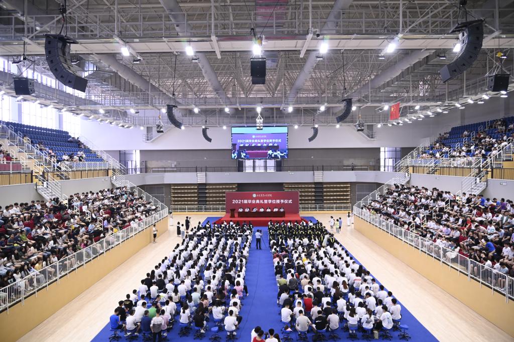 典礼在奏唱《国歌》声中拉开帷幕。党委书记丁希滨,党委副书记、校长王西奎,党委委员、副校长张伟代表校党委、校行政向圆满完成学业的2021届3408名毕业生同学们表示热烈祝贺,向辛勤培育同学们成长的父母、老师致以最崇高的敬意!