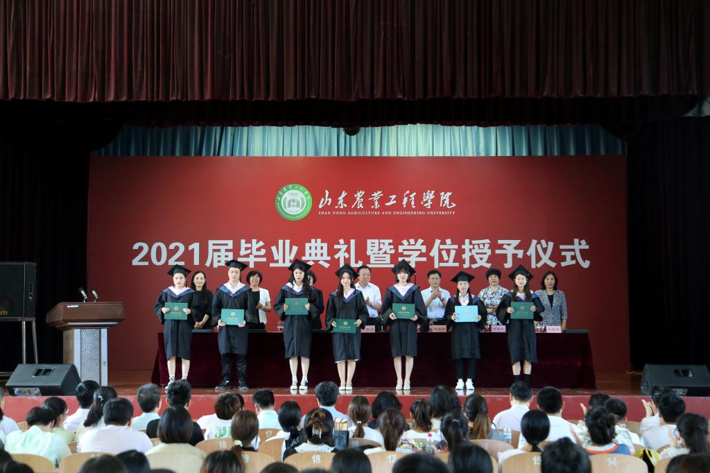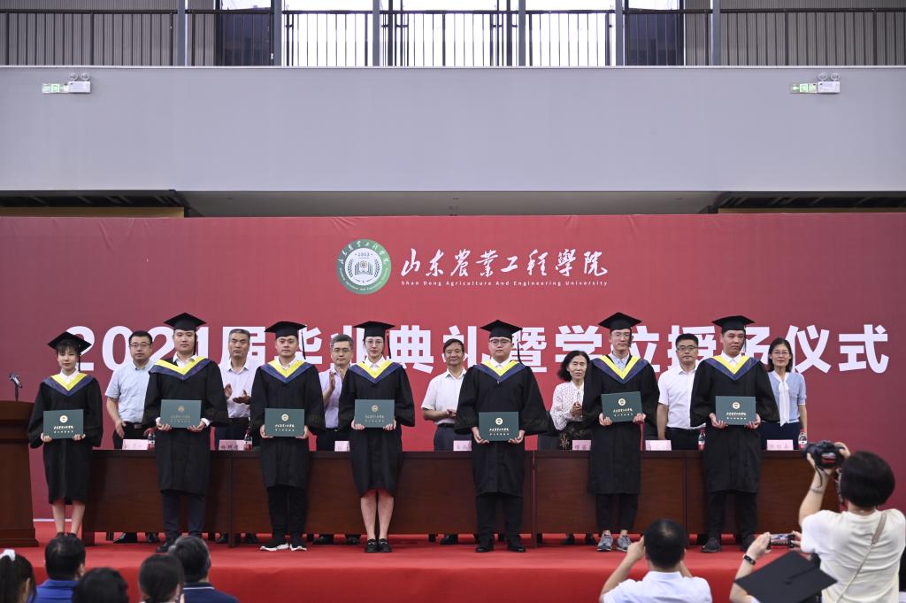 副校长张兆明,党委委员、副校长杨振宁,党委委员、组织部部长孙会海,分别宣读了学士学位授予决定,校领导依次为获得学士学位的毕业生代表授予学位,毕业典礼在欢送进行曲中圆满结束。