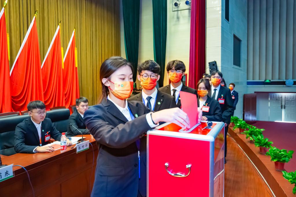 第三十五届学生会执行主席刘睿恒作题为《汲取百年奋斗磅礴伟力以时代担当绽放青春之花》的学生会工作报告,全面客观的总结了学生会一年以来的工作,立足当前提出了新的目标和任务,希望新一届学生会展望新征程,加强党的领导、坚持团的指导,持续提升思想政治引领力,聚焦主责主业、坚持服务中成长,持续提升助力同学成长成才服务力;强化作风整顿、加强工作机制建设,全面提升学生会组织的凝聚力和战斗力。