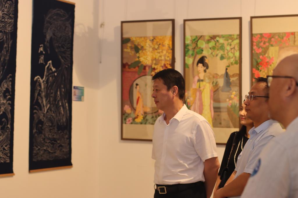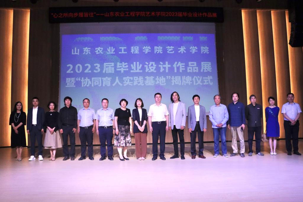 校党委书记张鸿波,历下控股集团党委委员、济南中央商务区投资建设集团有限公司董事长崔娜,中国美术家协会平面艺委会秘书长、省美术家协会副主席、山东工艺美术学院原党委副书记苗登宇,校党委委员、副校长郑华美,济南中央商务区投资建设集团有限公司独立董事赵峰,山东丽山教育科技有限公司总经理孙锡祝,山东管理学院书画研究院院长戴丕昌,山东英才学院艺术学院院长周长积,山东工艺美术学院教授、省美术家协会副主席唐家路,山东艺术学院教授孙迎峰,齐鲁工业大学艺术设计学院教授王东辉,山东女子学院艺术设计学院院长赵月,山东标识行业协会会长苗玉峰,济南文化创意设计学会秘书长张怡,匠为文化科技集团董事长李坤以及校企合作单位、艺术家、师生共计300余人参加开幕式。开幕式由艺术学院院长韩璐主持。