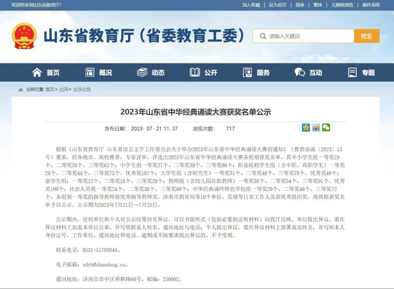 近日,中共山东省委宣传部、山东省教育厅、山东省文化和旅游厅、共青团山东省委、山东省妇女联合会、尼山世界儒学中心6部门联合举办的沿黄九省(区)青少年中华优秀传统文化经典诵读大赛获奖作品名单正式出炉,我校农业科技学院选送的作品《不朽》《美丽中国》在众多参赛作品中脱颖而出,分获三等奖和优秀奖。