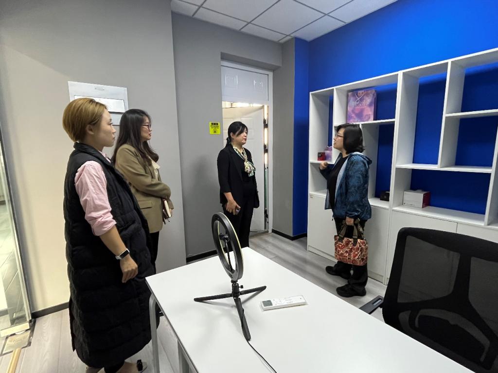 会后,赵阿茹娜院长一行参观了人文学院电子商务实训中心与秘书事务所,通过参观学生实训直播间、会议室、产品展厅等场地,进一步了解我校围绕应用型人才培养、新文科改革、产教融合等方面的重要举措,并表达了加强交流、深化合作的意愿。