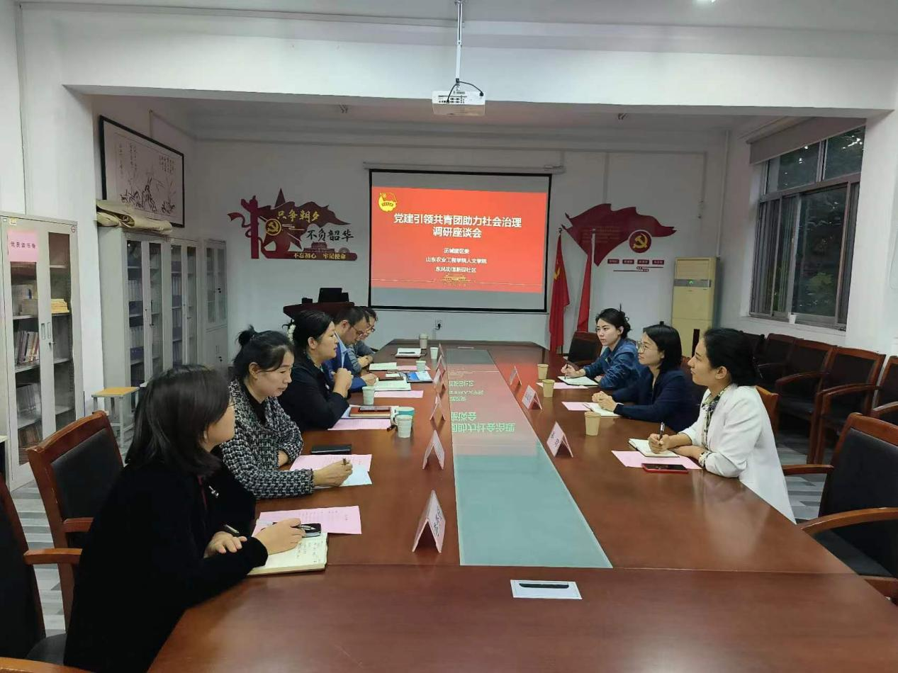 10月26日下午,共青团历城区委副书记王超慧到我校人文学院调研指导,新园社区党总支书记、居委会主任王雪慧,共青团历城区委综合科科长吴琼陪同调研。人文学院党总支书记王纪、院长高千秋、党总支副书记戎芸婷及相关人员参加座谈。