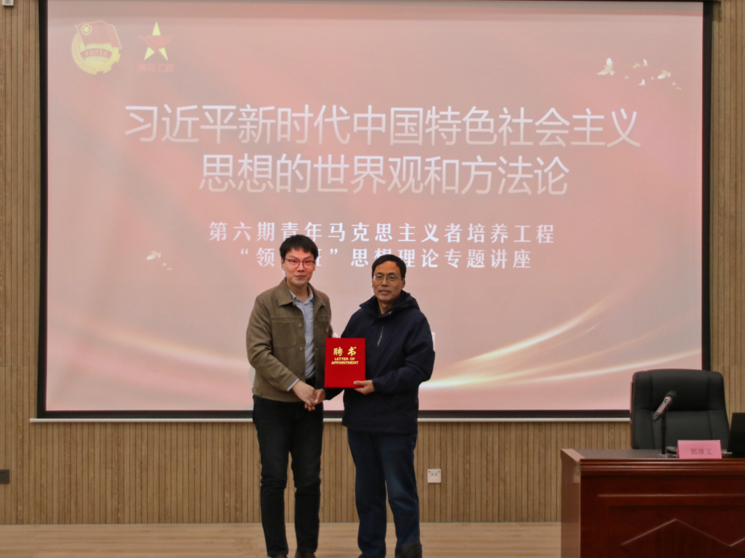 讲座开始前,举行了简短的聘任仪式,由校团委主要负责人为“领航班”导师团成员郭继文教授颁发聘书。随后,郭继文教授以“文化自信自强”为切入点,围绕什么是文化自信自强、为什么推进文化自信自强以及如何推进文化自信自强三个方面,深入浅出地阐释了习近平新时代中国特色社会主义思想的世界观和方法论,引导青年学子把握中国文化内涵、做到文化自觉,在新的起点上坚定文化自信、担当使命、奋发有为,共同努力建设中华民族现代文明。