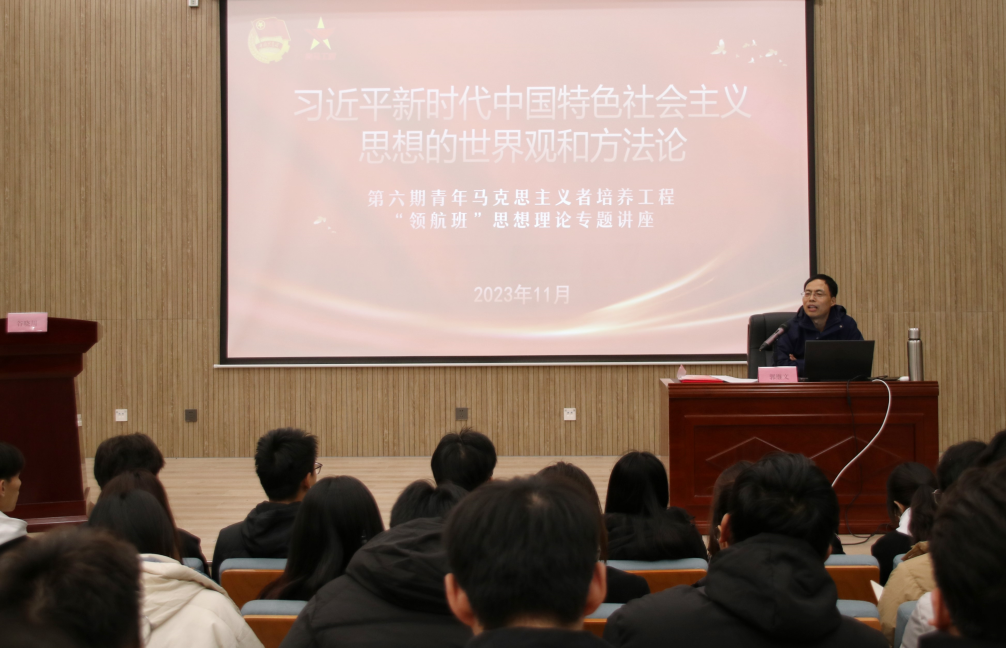 为深入学习贯彻习近平新时代中国特色社会主义思想和党的二十大精神,坚决贯彻落实习近平总书记关于青年工作的重要思想,努力做好新时代党的青年工作,11月16日下午,第六期青年马克思主义者培养工程大学生骨干培训班“领航班”在淄博校区举办思想理论专题讲座。“领航班”全体学员参加本次专题讲座,济南校区和齐河校区学员通过线上会议聆听学习。