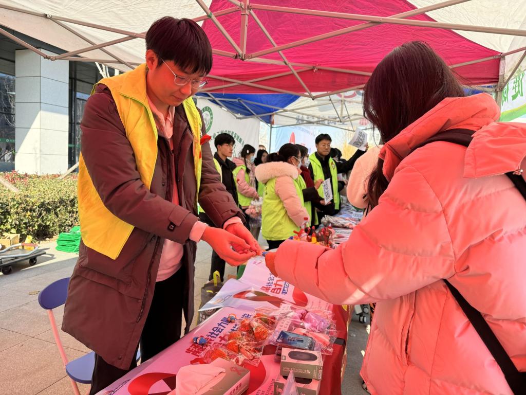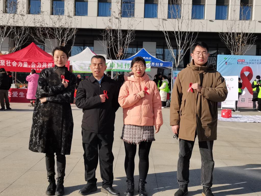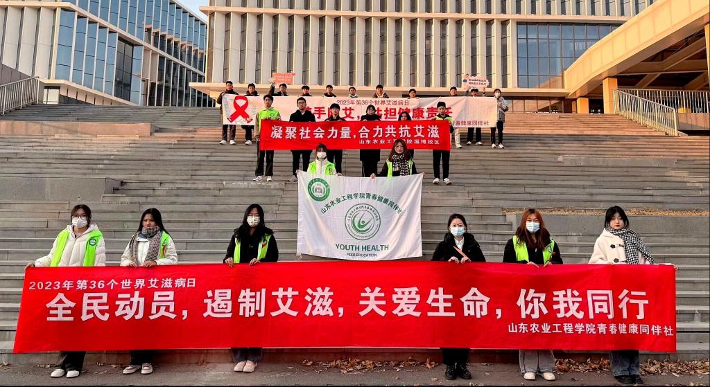 12月1日是第36个“世界艾滋病日”,为有效引导青年学生积极参与到艾滋病防控行动中来,普及艾滋病防治知识,增强学生防治艾滋病的意识和能力,我院学生社团青春健康同伴社在淄博校区开展“凝聚青年力量,合力共抗艾滋”——2023年“世界艾滋病日”主题宣传教育活动。校团委、教务处、淄博校区综合管理办公室、校医院、经济管理学院等部门领导及老师,淄博市周村区疾控中心与周村区总工会工作人员参与本次活动。