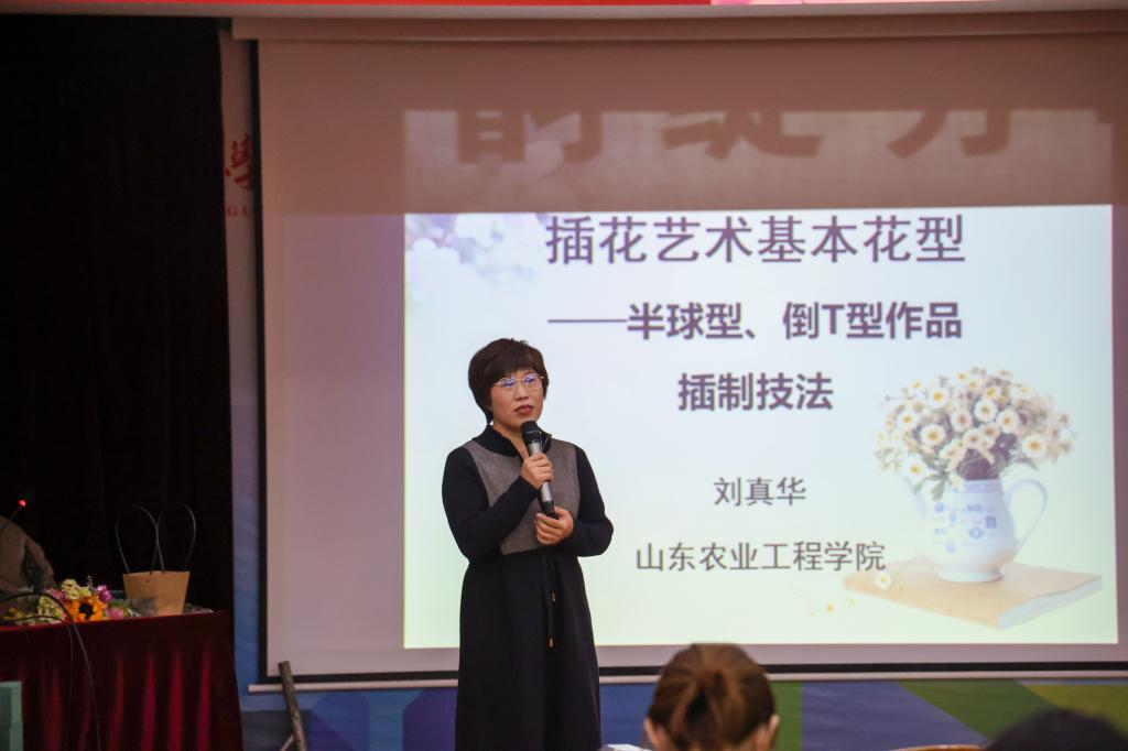 此次活动邀请林业工程学院教师刘真华进行授课指导,为大家讲解插花艺术的基本概念、插花技巧,对花卉的选择、颜色的搭配以及花枝长短的修剪等内容展开了介绍。