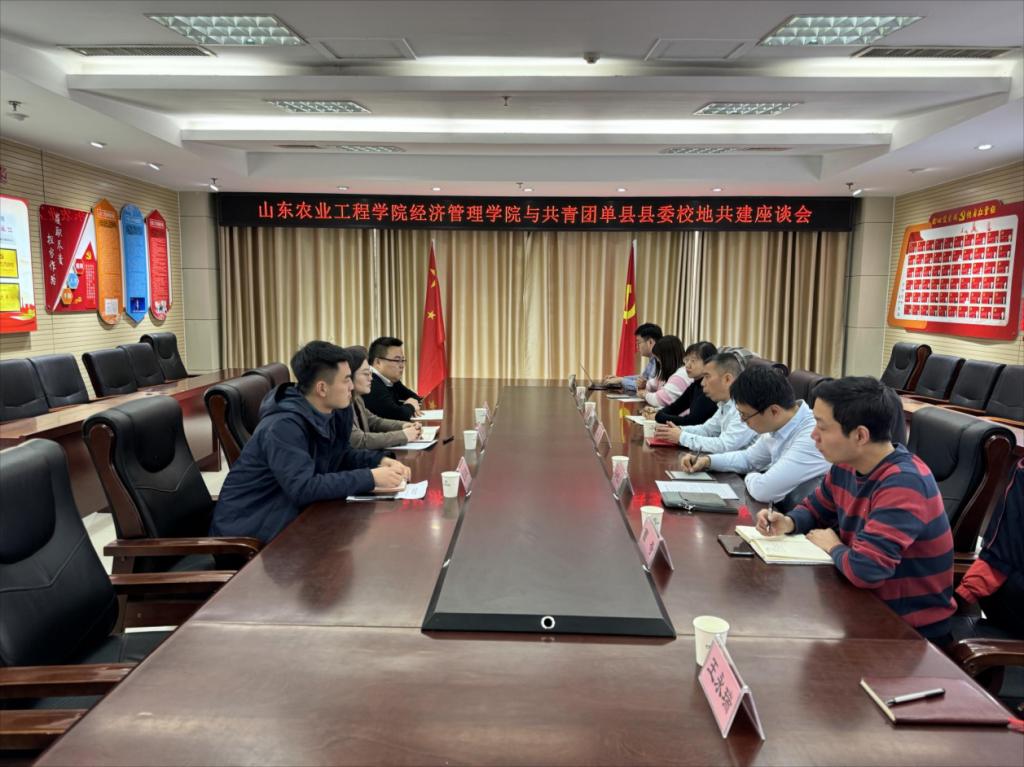 经济管理学院党总支书记马勇与团县委相关负责同志就经济管理学院与共青团单县县委开展校地共建事宜进行座谈交流。马勇介绍了学校基本情况、经济管理学院学生就业情况,表达了对校地合作的期待,希望结合学校办学特色,找准方向,共建校地合作基地,从产业、文化、生态、人才四个方面精准发力,突出“创业”、“创新”两个维度,引导学生实践更有针对性、靶向性,共育乡村振兴建设人才。王笛介绍了单县经济社会发展概况、共青团工作以及百万大学生进社区和返家乡社会实践等工作情况,表示希望与我院在科学研究、青年人才培养等方面开展校地合作。