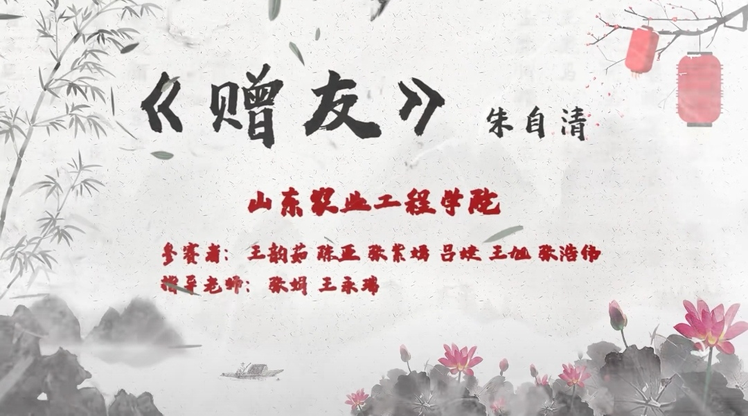 自活动开展以来,在校团委指导下,经济管理学院学生社团青春健康同伴社积极承办校赛选拔,精心组织开展校内初赛、复赛、决赛,广泛发动学生参加活动。经济管理学院辅导员张娟、王永瑞指导校赛一等奖《赠友》团队认真打磨作品,以新颖的形式诠释了青年一代对友情的独特理解,格调高雅,贴合主旨,用语言传递中华经典,展现当代青年积极向上的精神风貌和弘扬中华优秀传统文化的责任担当。