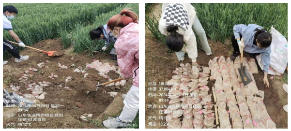 在淄博市桓台县试验基地,青年学生在团队老师的带领下开展腐熟菌剂实验。他们志存高远、脚踏实地,在严谨试验与辛勤劳作中厚植爱农情怀,练就兴农本领。
