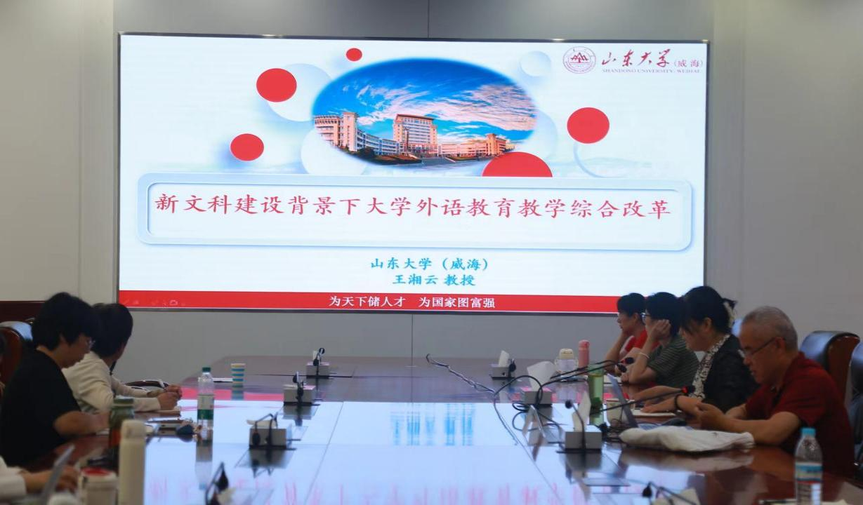 为进一步深化外语教育教学改革,培养高素质外语人才,6月13日下午,山东大学王湘云教授应邀来我校作了题为“新文科建设背景下大学外语教育教学综合改革”的报告。报告会由人文学院院长高千秋主持。